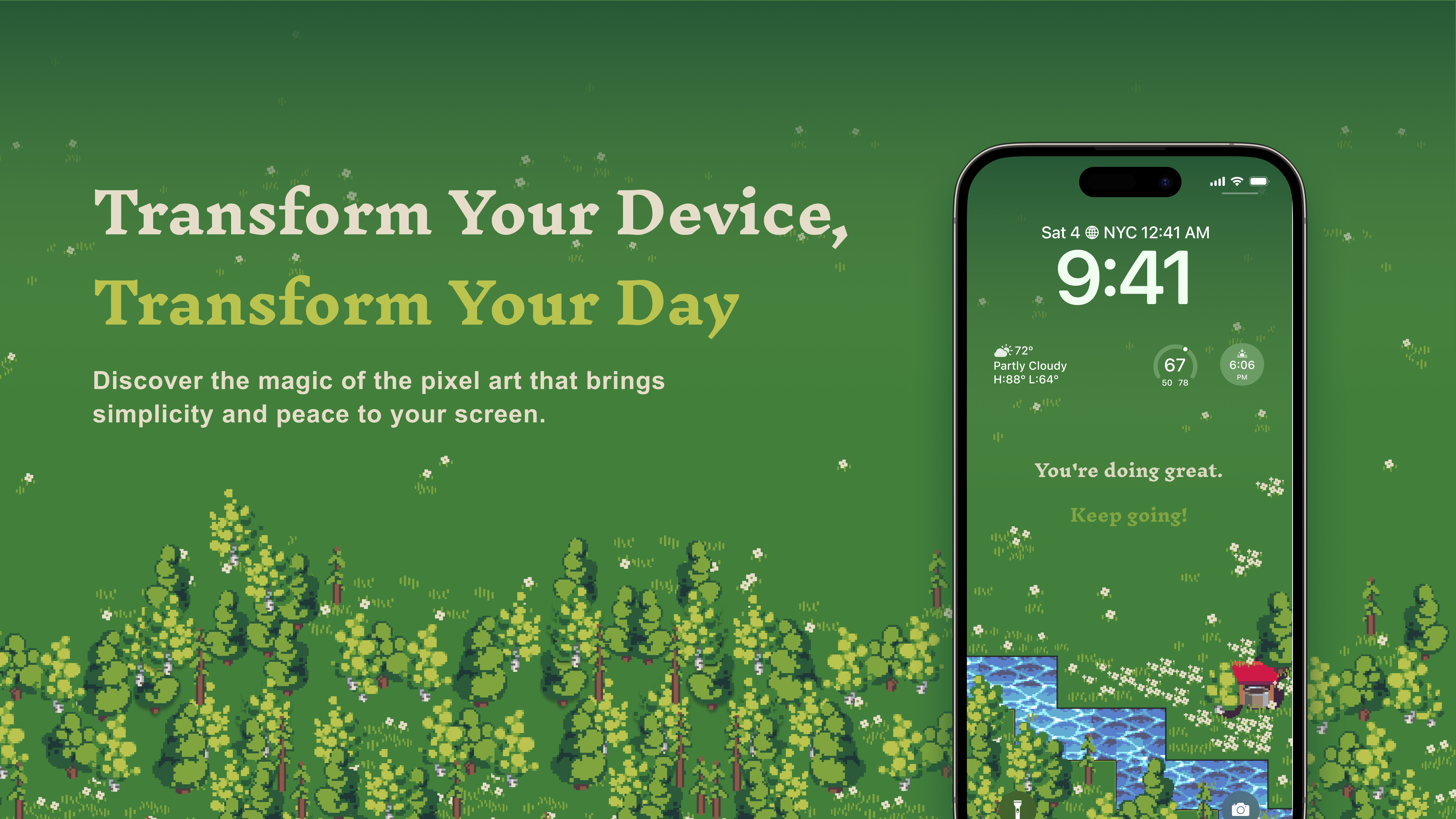 This project presents a pixel art wallpaper series designed to bring calm, warmth, and positive energy to everyday device use. I combined nostalgic game inspired visuals with modern mobile UI composition, focusing on nature, soft motion, and gentle affirmations. The result is a set of adaptable wallpapers that balance visual richness with readability, available both with and without captions for different user preferences.