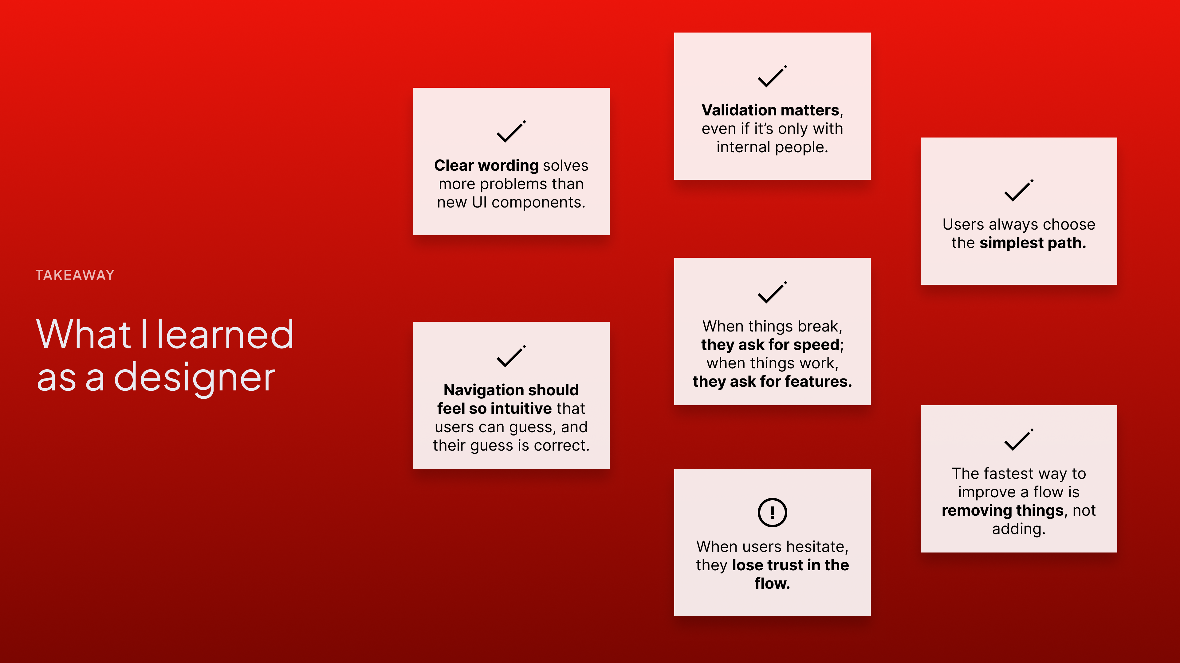 I worked closely with developers, marketing, and business teams to turn real user needs into shipped solutions.
